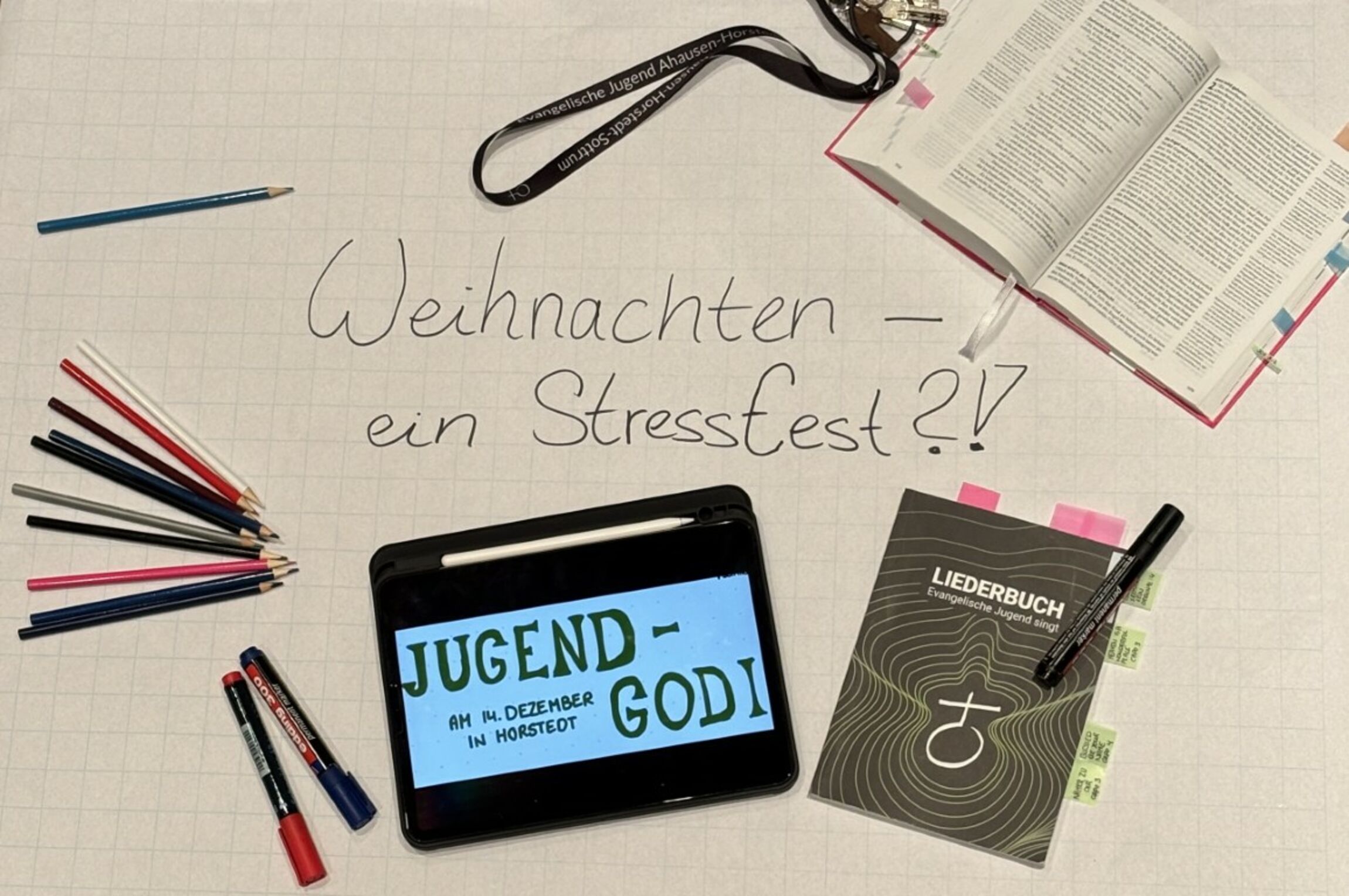 Pling. Eine Nachricht von Emma geht im Gruppenchat der Evangelischen Jugend ein. „Am 14.12.2025 ist um 18 Uhr unser 4. Jugendgottesdienst. Diesmal in Horstedt. Wer macht mit? Bitte tragt euch in die Umfrage ein!“ lese ich.